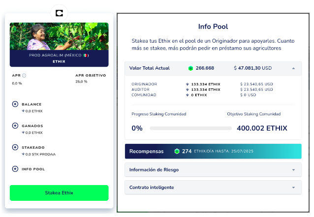 Cabe destacar que aunque el proyecto de financiamiento de Productos Agroalimentarios no es una oportunidad de inversión en la plataforma, sí lo es el aporte de colateral en la plataforma de Ethix.
